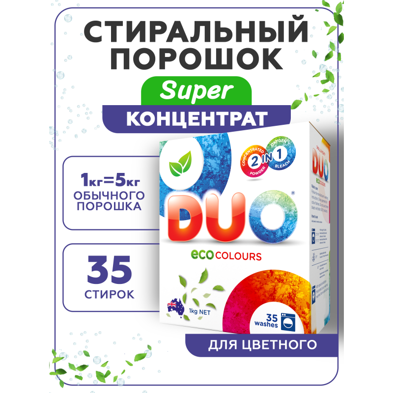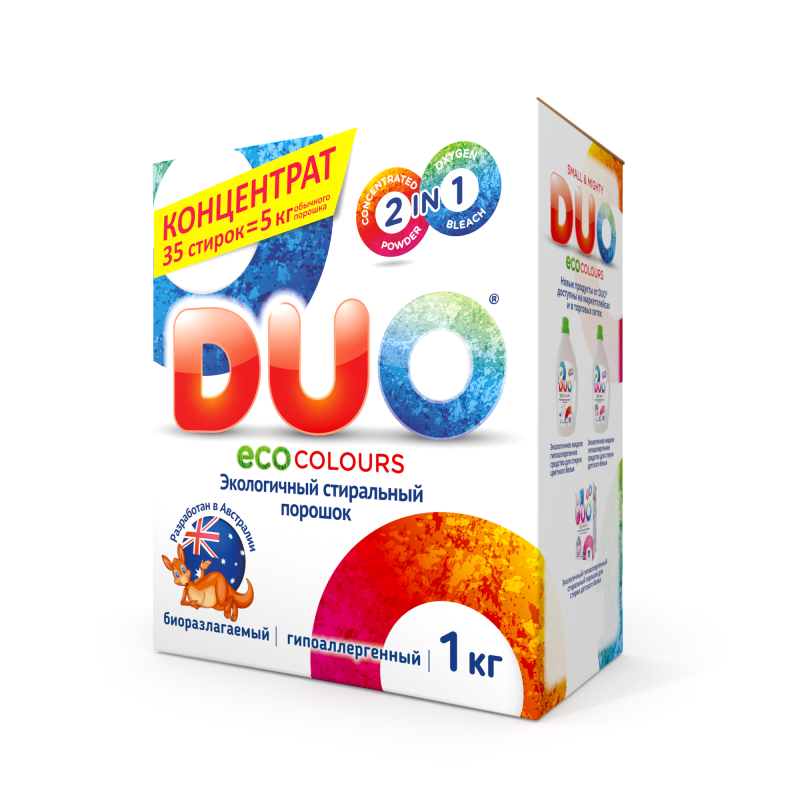 Խտացված լվացքի փոշի գունավոր հագուստի համար (1000 գ, մինչև 50 լվացում): Էկոլոգիապես մաքուր և անվտանգ միջոց գունավոր և մուգ հագուստի համար, որը պահպանում է գույնի կայունությունը: Ակտիվ թթվածնով հարստացված՝ օգնում է հեռացնել օրգանական ծագման բծերը, ինչպիսիք են ճարպը, սուրճը, խոտը և այլն: